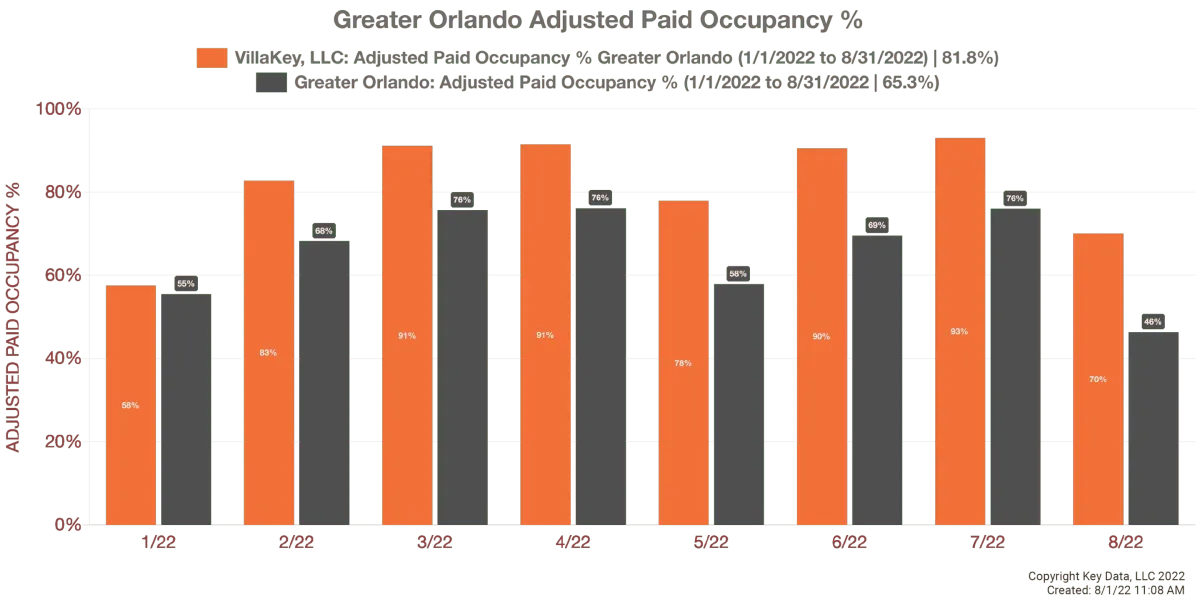 *Based on homes with the same number of bedrooms in Kissimmee, Florida from January 1, 2023 to December 31, 2023 via Key Data Dashboard Adjusted Paid Occupancy Report generated January 4, 2024.
